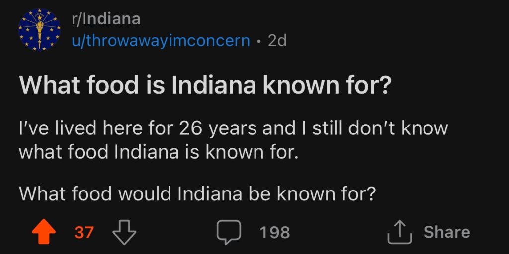 As a frequent browser of the subreddit r/Indiana, I often come across Redditors curious about whether or not Indiana has unique food traditions. It’s difficult to articulate what “Indiana food” is. Dishes most closely associated with the state of Indiana – namely sugar cream pie, pork tenderloins, and to a lesser extent Beef Manhattans – are not unique to the Hoosier state. Surrounding midwestern states maintain similar traditions. Here’s a more productive question: what do Hoosiers themselves associate with being Indiana cuisine? South of Indianapolis, Hoosiers unequivocally associate persimmon pudding with their home state.