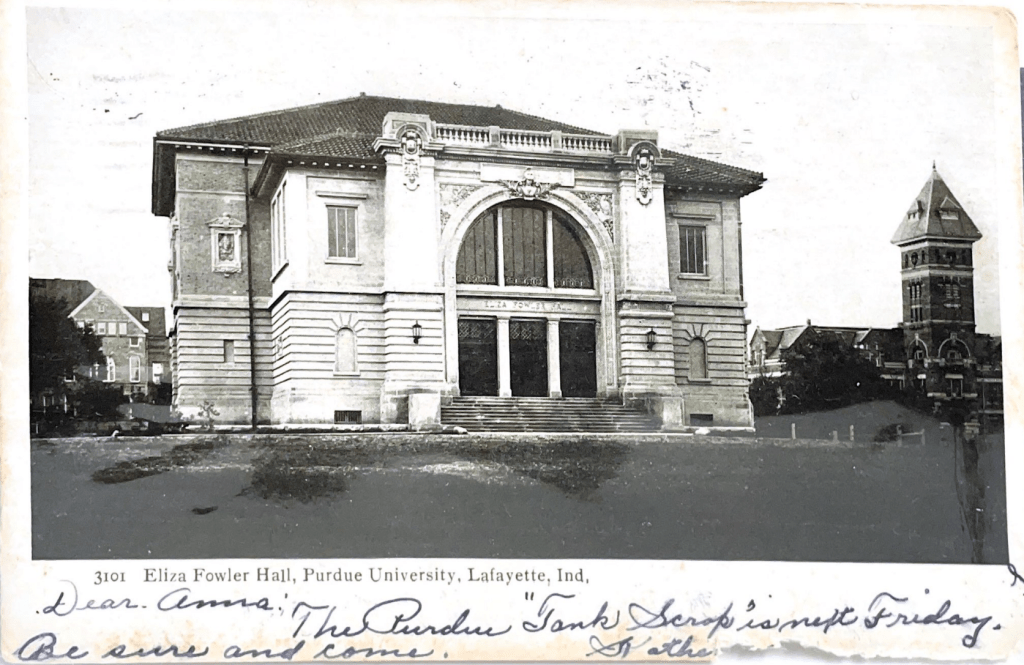 Before it was demolished in 1954, Fowler Hall held the distinction of being the only Purdue University building to be designed by Vonnegut & Bohn, the architecture firm of Kurt Vonnegut, Jr.’s family. As a long-time reader of Kurt Vonnegut, Jr., I was tickled that there was a connection between the Vonnegut family and my current place of employment.