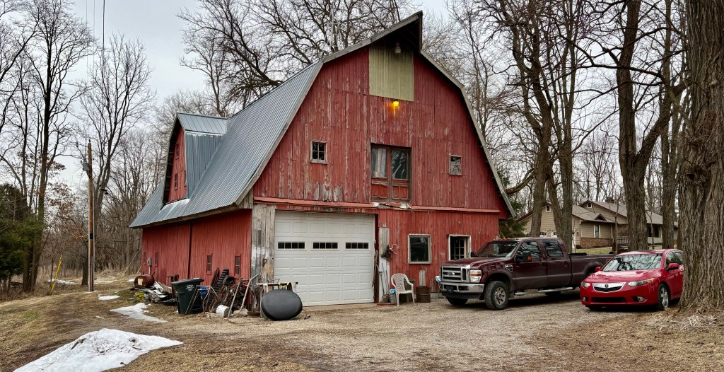 In circa 1980, David began building his own barn and fashioned it after the J.H. Bone barn. David’s barn has a gambrel roof, is transverse style, and is roughly the same size, but painted red. I like to compare his barn to the Ise Shrine that is rebuilt every 20 years in Japan. The methodology in which his barn was constructed, in particular knowing what trees to use, was duplicated. David employed the same resourcefulness too, he took drives to Camp Atterbury to collect lumber from old World War II warehouses and used recycled telephone poles for the beams. While a steel barn would have served the same purpose, a wooden barn is a meaningful way to feel connected to the past. David did put a basketball court in his hayloft though, J.H. Bone never had one of those as far as I know.